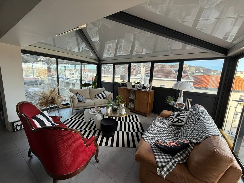 L’espace de vie, aux volumes rares, se déploie sur environ 70 m² et se compose d’un séjour raffiné, d’une cuisine ouverte entièrement aménagée et équipée, ainsi que d’une salle à manger sous véranda, créant une atmosphère chaleureuse et élégante, idéale pour recevoir.