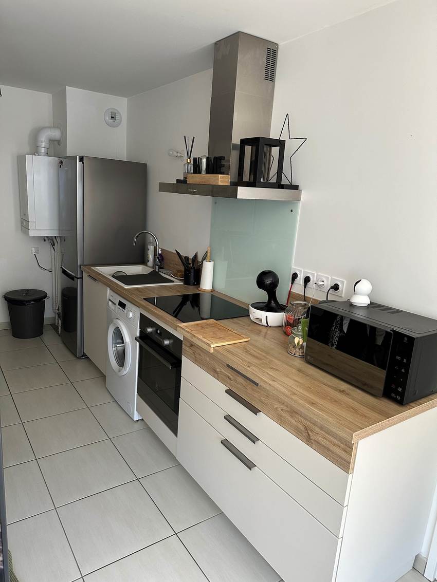 Cet appartement jamais habité se compose d'une entrée dégagement avec rangements, d'une pièce à vivre lumineuse avec une cuisine aménagée et équipée ( plaque , plan de travail, frigo top, hotte ...), d'une grande salle d'eau avec douche à l'italienne et wc et d'une chambre. Placard de rangement. Ascenseur, Chauffage individuel gaz à condensation haut de gamme Viessmann . volets roulants électriques. Isolation RT2012 phonique et thermique ( économie au niveau du chauffage ) .Double vitrage aluminium. Visiophone. Accès sécurisé Vigik.