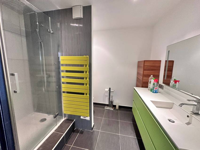 Cet appartement se compose d'une entrée dégagement, d'une salle à manger , d'un séjour avec balcon ouvert sur une cuisine aménagée et équipée, deux chambres avec rangements, d'une salle d'eau avec wc. 1 garage complète ce bien. Possibilité d'une place de parking en sus du loyer.