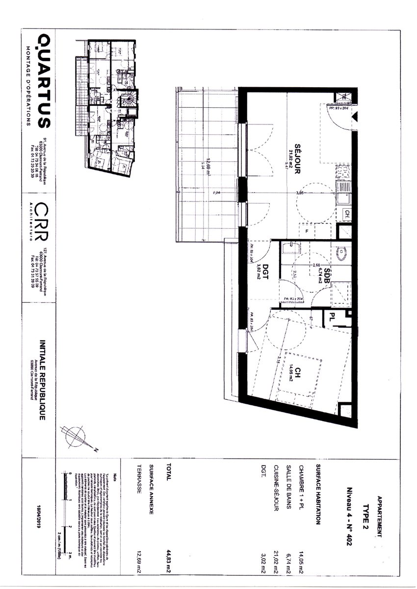 QUARTIER REPUBLIQUE/1ER MAI T2 - 44,83 m² + TERRASSE 12 m² + PARKING