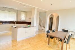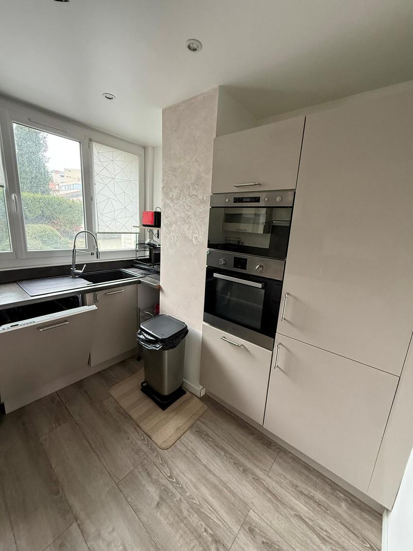 Cuisine équipée : plaque, four, micro-ondes, lave-vaisselle, réfrigérateur, hotte.