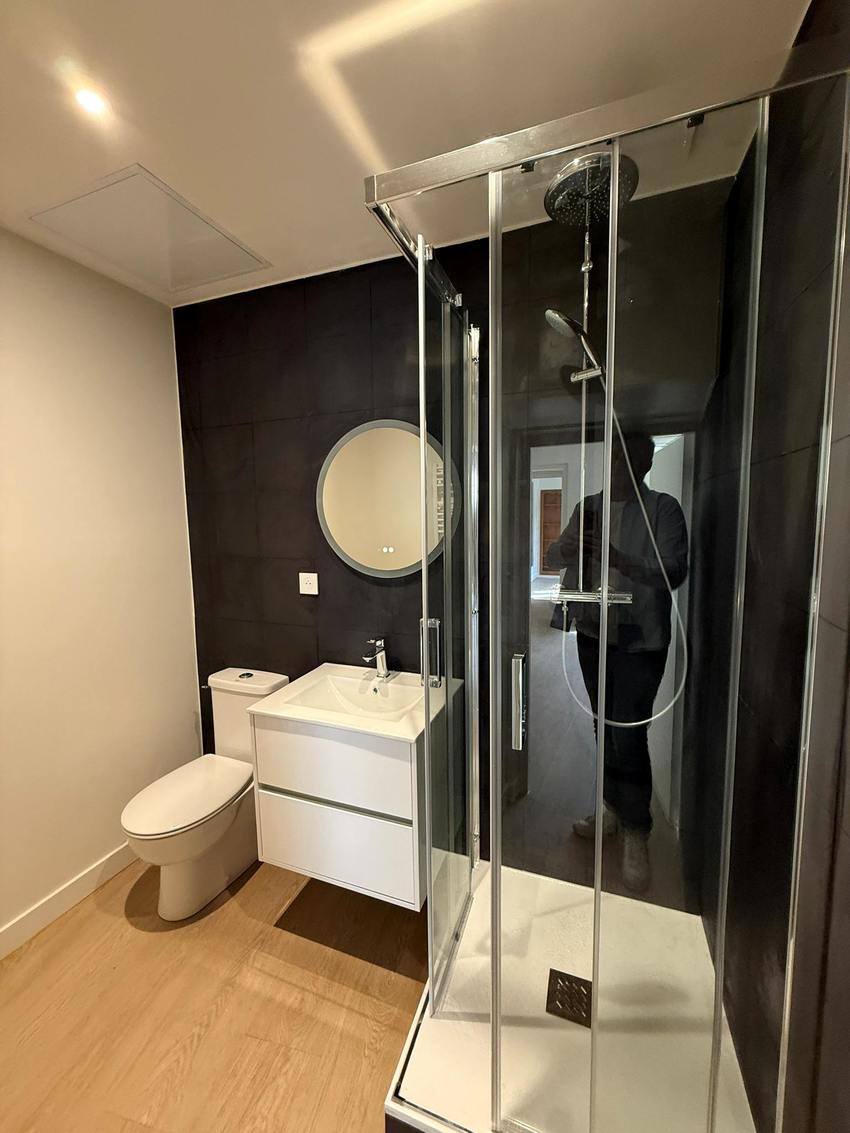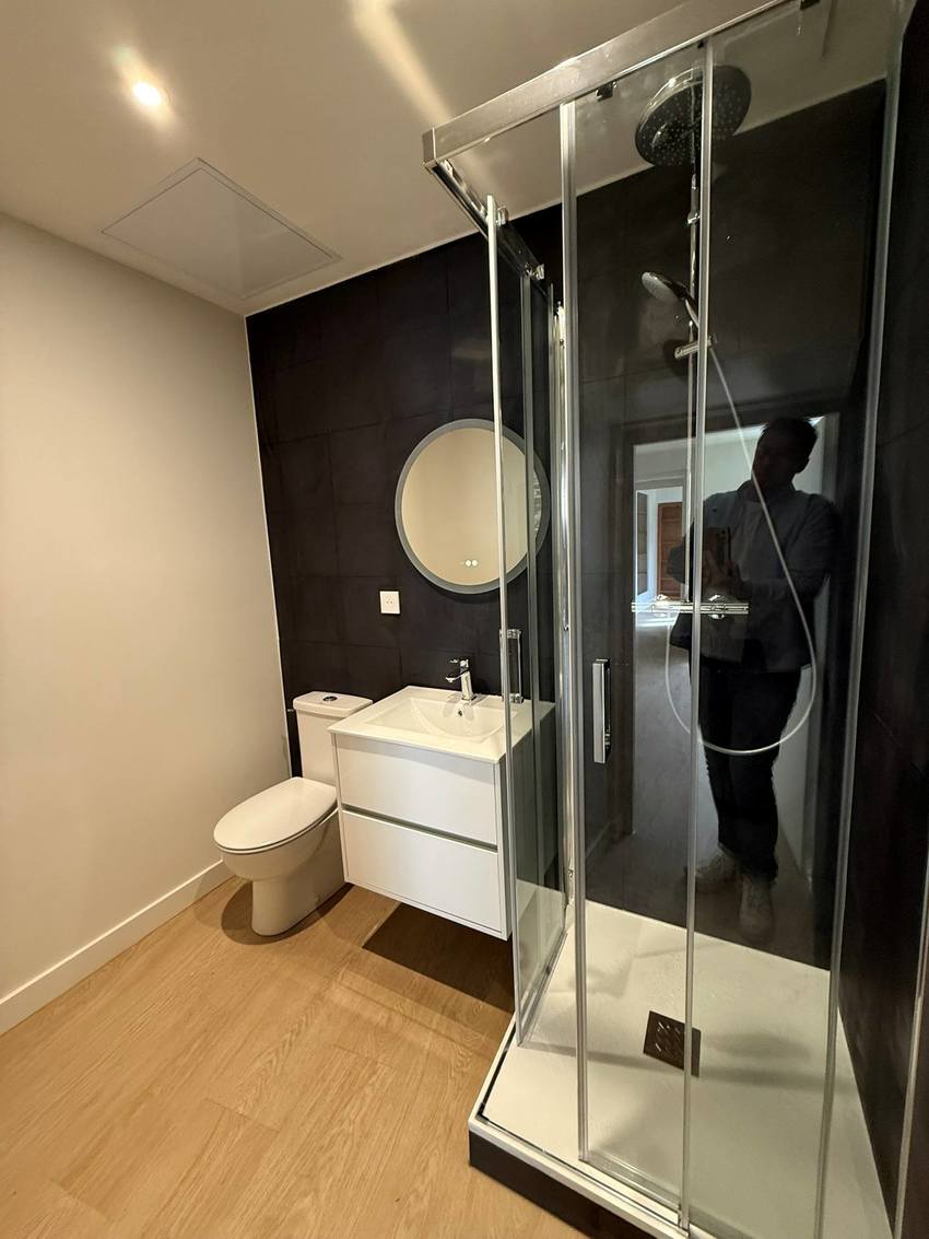 - Une salle d’eau moderne avec douche effet ciel de pluie et WC